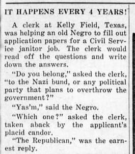 The Southwestern Times, which served Bellaire and the surrounding villages in the 1940s, occasionally ran what were essentially “Negro jokes” tucked among civic announcements and advertisements. One small item printed in 1949 reads: